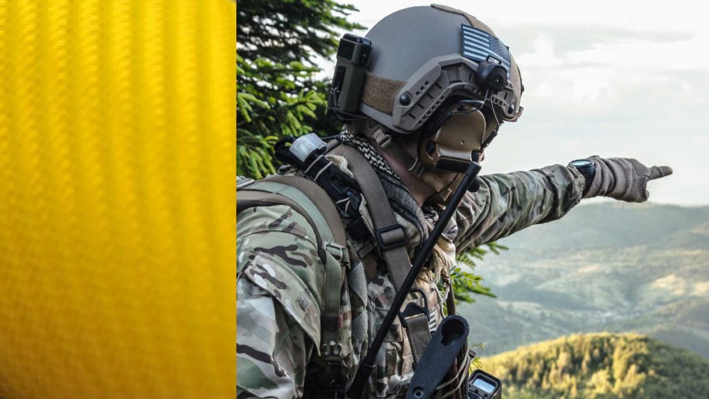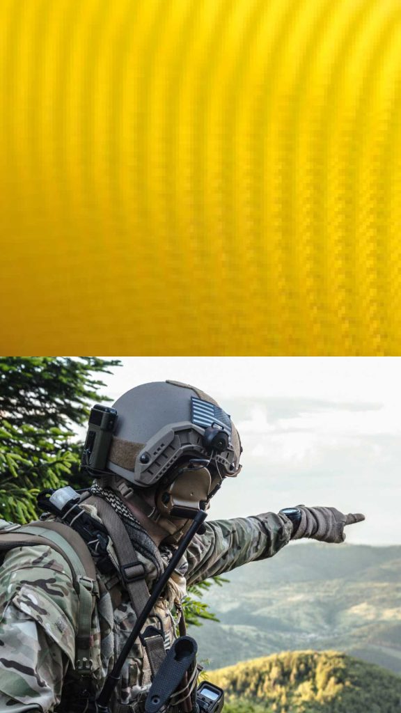 Pre zbrojný sektor azda treba spomenúť najvyužívanejší materiál kevlar zabezpečujúci vysoký balistický výkon a nízku hmotnosť ochranných pancierov a balistických výrobkov používaných všade kde je potrebné chrániť životy.